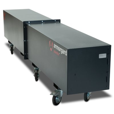 These mobile pipe storage units are an excellent way to store copper and plastic pipe, conduit, and trunking on site. They are specifically designed to keep valuable and vital materials locked up and organised. The units are constructed from robust, powder-coated steel plate that offers maximum protection and robustness in challenging environments. The access points are secured with a 5-lever deadlock, and each unit has an individual serial code which is required if you need to order replacement keys. These pipe stores are ideal for preventing the theft of materials that are often targeted for scrap such as copper, aluminium, stainless steel, and more. Internally, each of these pipe units is separated into 4 full-length compartments. These compartments allow you to organise and order your materials in the most convenient way and maintain tidiness. The four heavy-duty swivel castors at the base of the unit make these containers extremely mobile. You can push and steer them across flat surfaces with very little effort. Additionally, there are forklift skids to allow you to move the units to different levels or areas when it is not possible to do it manually.