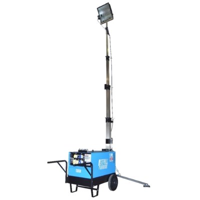 Our metal halide lighting towers are powerful and robust temporary lighting solutions. They are ideal for demanding industries and are suitable for construction sites, roadworks, yards and more. They are diesel fuelled units with a 6KVA generator and 110V and 240V outlets. These tower lights have a high efficiency 1000w metal halide floodlight that can light large areas effectively. The light head is mounted on a detachable telescopic mast that has a 5.5m range with a manual lifting system and a 24-litre fuel tank.