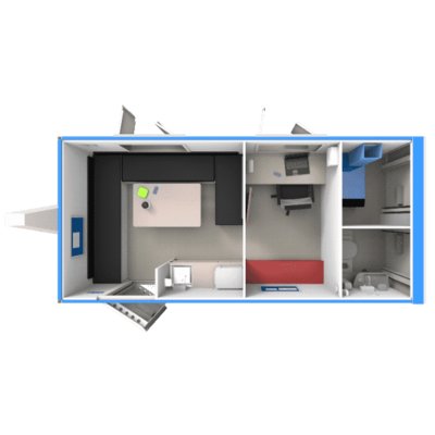 This robust and secure towable cabin is made from steel and has lockable security doors, window shutters, a 5-point deadlocking system, and a hydraulic isolation switch to ensure safety and security on site. It is suitable for the most remote and demanding environments.