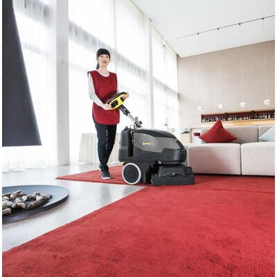 Using a water and carpet cleaning solution spray with a powerful roller brush and vacuum, these carpet washers produce a deep and thorough clean in one pass. As you walk along, it sprays the water and cleaning solution into the carpet. At the same time, it scrubs and vacuums to remove the solution, picking up dirt and grime with it. This is a quick and effective way of removing deep-seated dirt, stains, dust, allergens and bacteria from carpets in commercial spaces.