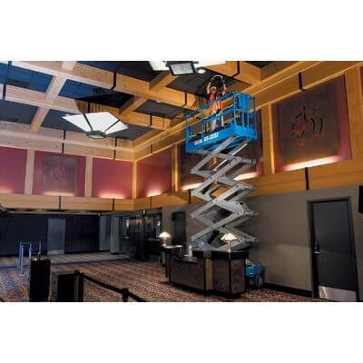 The Genie GS3232 is an electric scissor lift that can raise its platform to a maximum height of 9.75m, offering a total working height of 11.75m. It is ideal for high-level access and long duration jobs at height in indoor areas. The wheels feature non-marking tyres so that you can drive the lift across finished floors. The electric motor does not produce any fumes, so it is safe and very quiet.