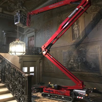 The Hinowa Lightlift 26.14 is compact and narrow, so you can use it for access in very confined areas. The tracks also offer excellent traction across rough and sloped terrain. When in place, you can widen the tracks to 1.49-metres for extra stability, and you can lower the four folding outriggers for further support, even if the surfaces are different levels.
