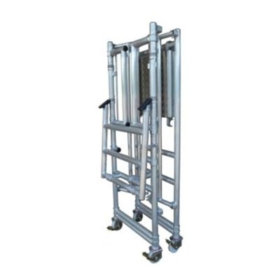 The folding frame design allows for easy transport and storage. These lightweight podiums can even through standard sized doorways when fully assembled. The working platform is surrounded by a 1-metre high guardrail on all four sides, accessed through secure saloon gates for easy access. This helps to ensure safety whilst working at a height by eliminating the possibility of a fall form the platform.