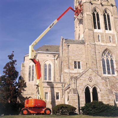 The JLG 800AJ is a diesel-fuelled articulating boom lift with a maximum platform height of 24.46-metres, which allows for a working height of up to 26.38-metres. The jib also offers 15.74-metres of horizontal outreach, with an up and over height of 9.78-metres. This cherry picker is ideal for working on high up and hard to reach places, perfect for when there is no or limited access from the ground. You can use it for construction, maintenance, steel erection, installation, inspection, cleaning, finishing, and more.