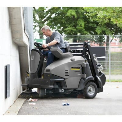 These Karcher road sweepers feature a forward and reverse gear, they are easy to use and they make the job of sweeping large outdoor areas much faster, more efficient and safer.