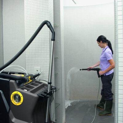 Mounted on a heavy-duty chassis with wheels, and combined with a hardwearing plastic outer casing, this unit is highly manoeuvrable and can be transported around and between sites with ease. You can clean with the integrated high-pressure hose, which can be dosed with detergent, up to a range of 15m as well as utilizing this unit with a number of different attachments, for example, a foam lance.