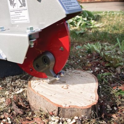 This stump grinder features a 6hp petrol engine that powers a sharp blade on a rotating wheel. The blade rotates at great speed to chip away at tree stumps quickly. They leave a pile of fine chips which you can rake together and collect for compost, or pick up using a vacuum or blower machine. These professional machines take away the need to laboriously dig below the stump or hack at it with an axe to remove it. This stump chipper can grind up to 250mm below the ground level surface. The unique side discharge chassis keeps the majority of the cutting away from the cutting head giving you a clearer line of vision of the stump you are grinding.