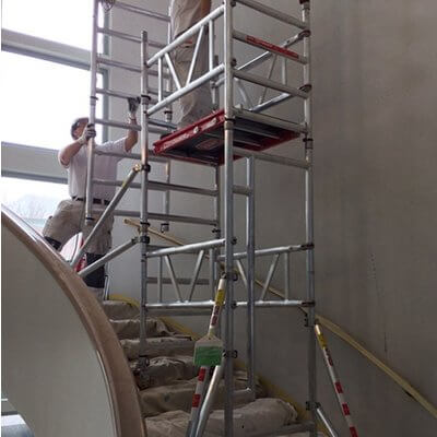 These staircase scaffolds are perfect for completing painting, decorating, installations, repairs and more above stairs. They provide a safe and secure work platform from which you can work comfortably at a height and get the job done quickly, professionally and safely. With a MiStairs stairway scaffold tower, you have both of your hands free to complete the work and you can move about freely throughout the work area, whereas with a ladder you would have less mobility, less security and less comfort.