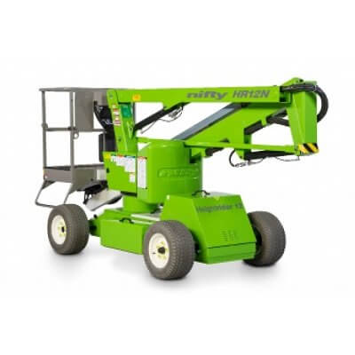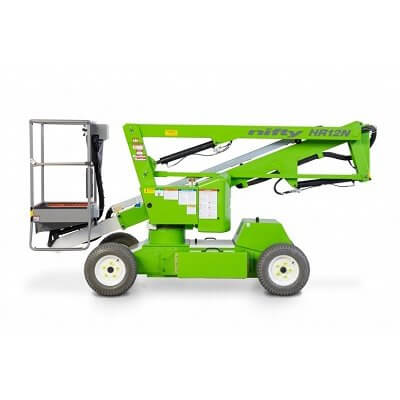 The Niftylift HeightRide 12 is a narrow self-propelled boom lift with a bi-energy power supply that you can run using fossil fuel or a battery. This MEP can raise its platform to a maximum height of 10.2-metres, which gives the user a maximum working height of 12.2-metres. The telescopic upper boom offers greater accuracy when you are positioning the 0.65-metre by 1.10-metre cage. The platform has a 200kg safe working limit, ideal for lifting a person when undertaking inspection, installation, cleaning, maintenance, finishing, and other work at heights.