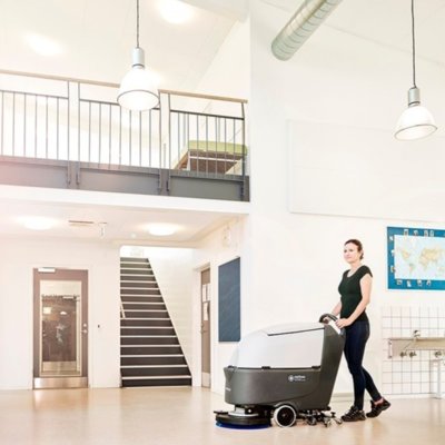 Nilfisk SC530 pedestrian scrubber dryers are easy to use, all-in-one floor cleaning machines, designed for professionally cleaning large floor areas. Featuring a 530mm scrubbing brush, a large squeegee, a high powered vacuum and 61L fresh and dirty water tanks; these professional floor cleaning machines are ideal for use in supermarkets, large offices, public buildings, leisure facilities, shops, schools, hospitals and more.