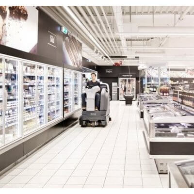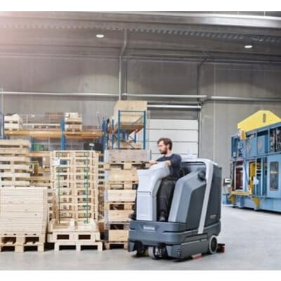 The Nilfisk SC6000 ride on floor scrubber dryer is an advanced commercial floor cleaning machine, ideal for cleaning large hard floor areas in warehouses, factories, supermarkets, shops, leisure facilities, hotels, hospitals, schools and more. Combining powerful cleaning with smart technology, the Nilfisk SC6000 is one of the most impressive battery-powered commercial floor cleaning machines on the market.