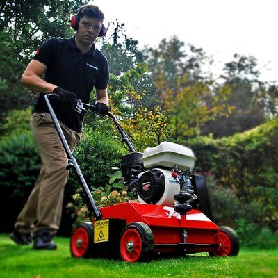 Our petrol-powered lawn scarifier is an essential piece of equipment for professional gardeners, landscapers and groundskeepers, as well as gardening enthusiasts. It is used to remove moss, thatch and other unwanted organic matter from your lawn, prune the grass, and give more space for grass to grow and thrive. This petrol lawn scarifier features independently-sprung hardened swinging blades which turn over the lawn to tease out the thatch and moss, as well as prune the grass.