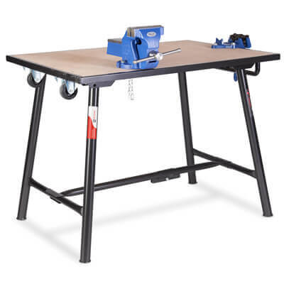 We have folding workbench hire available nationwide. Manufactured with a solid, robust steel frame, this work bench is designed to cope with the demands of regular on-site use. This is a solid, portable work bench that is lightweight and collapsible - ideal for all trades and engineers and offering convenience and the quality required for a long service life. The sturdy work bench is ideal for mounting tools and comes complete with a REMS 6" chain vice and 4" engineers vice. The REMS vice features a heavy-duty cast iron base, hardened steel jaws, parallel pipe rest and in-built pipe bender. The REMS vice is ideal for professional, precision work. The engineers vice is strong, durable piece of equipment that is perfect for medium-duty professional work and DIY tasks.
